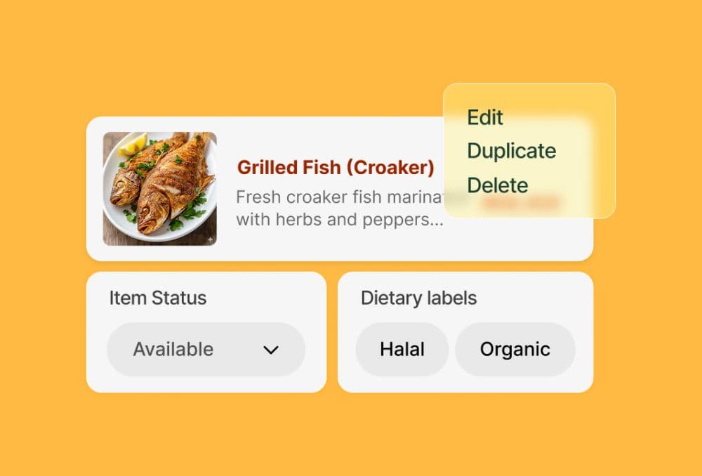 Change prices, items, or availability anytime. Your menu updates instantly.